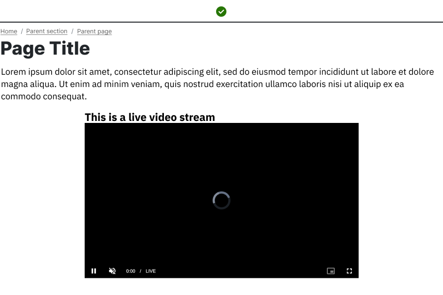Good example: The Live Video Stream is placed in a wide content area using the Standard (Inset) layout near the top of the page.