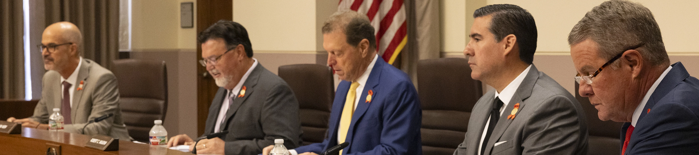 The Texas Department of Transportation is governed by the five-member Texas Transportation Commission and an executive director selected by the commission. Commission members serve overlapping six-year terms and are appointed by the governor with the advice and consent of the Texas Senate.