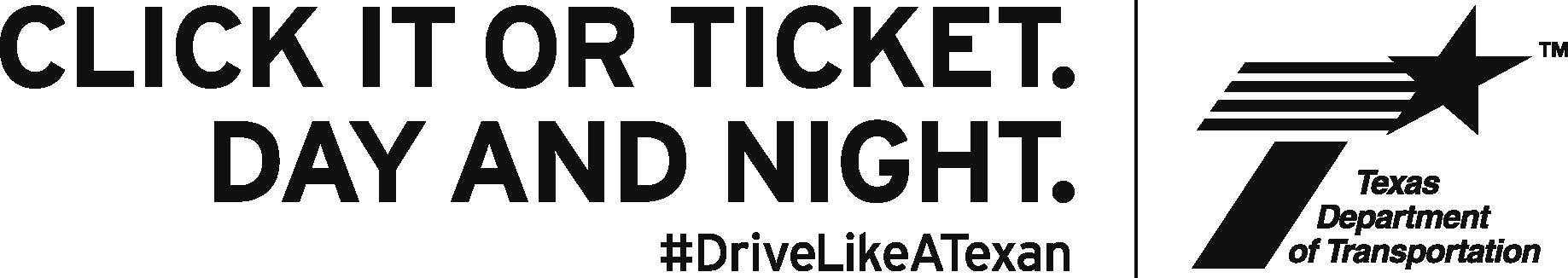 La campaña anual "Click It or Ticket" les recuerda a los tejanos que se abrochen el cinturón de seguridad día y noche, en el asiento delantero o trasero, cada vez que se suban a un vehículo. Actualmente, el 90% de los tejanos se abrochan el cinturón, sin embargo, demasiados choques se vuelven mortales porque alguien no llevaba puesto el cinturón de seguridad. En 2024, 1,069 conductores y pasajeros desabrochados murieron en las carreteras de Texas.