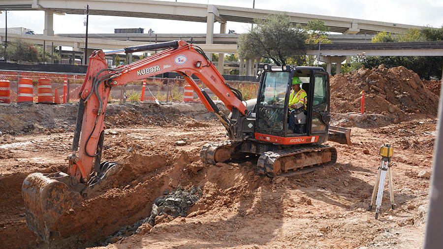 Installation of 8-foot diameter storm water pipes near I-69 and McGowen street pipes will ultimately carry stormwater from I-69/SH 288 mainlanes to drainage system underneath St. Emanuel street